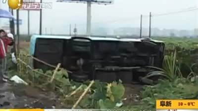 惊险一幕 浙江公交车侧翻乘客似漂浮
