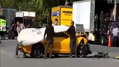 不是拍戏!实拍片场杯具大黄蜂撞上警车