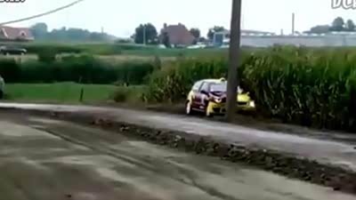 吓死赛车手了 汽车拉力赛汽车撞飞野鹿