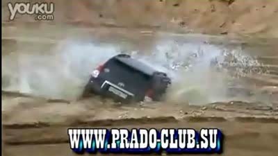 得意忘形!俄罗斯车友的普拉多掉进水坑