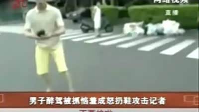 男子醉驾被抓恼羞成怒扔鞋攻击记者