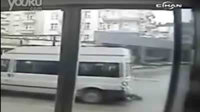 她幸运吗?实拍被汽车撞倒碾压的妇女