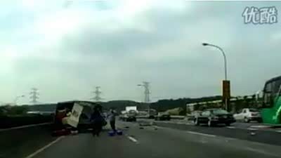 又是爆胎惹的祸 实拍台湾高速事故现场