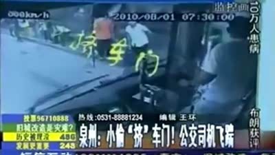 泉州小偷挤车门作案遭神勇公交司机飞踹