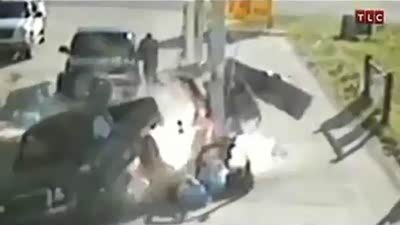 奇迹般生还 火车撞卡车后刮倒不幸路人