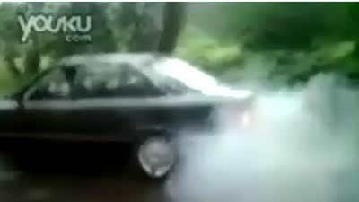 哥们儿丢人了!怂人玩宝马烧胎栽进沟里