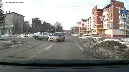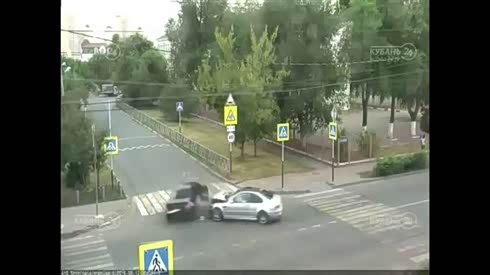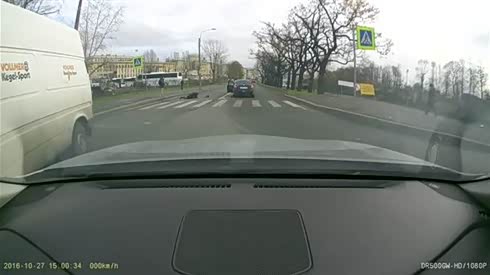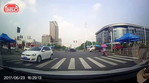 路口两车悲催相撞 摄像车倒霉被误伤