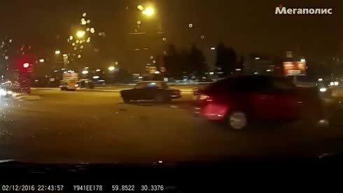 全都太猛了 两辆小轿车路口内惨烈撞击