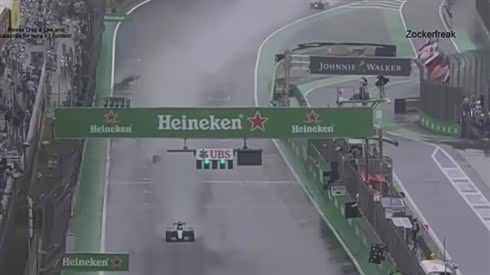 失意法拉利 F1赛车巴西战雨天失控撞车