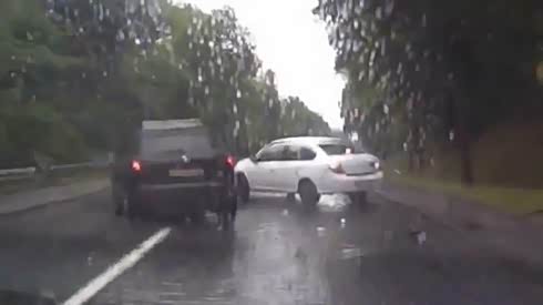 吓尿了! 实拍摩托猛撞轿车恐怖瞬间