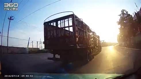 恐怖的瞬间 看直行车与拐弯车辆相撞