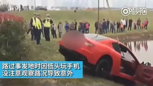 只顾玩手机 女司机开玛莎拉蒂跑车坠河