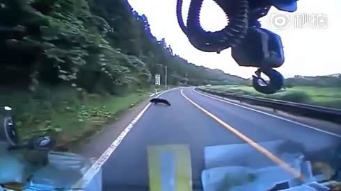司机吓得不轻 小黑熊横穿马路惨被撞飞