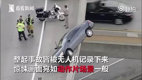 真不是拍电影 车身一半悬空高架桥外