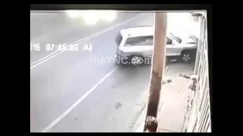 不敢回想 汽车瞬间把路边行人撞进墙里