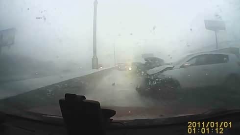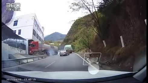 司机完全吓懵了 大货车相撞瞬间烧成壳