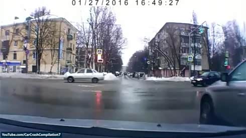 无视红绿灯 实拍两辆汽车路口猛烈对撞