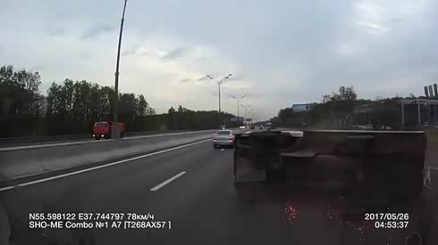 摄像车吓坏了 小货翻车滑行火花四射