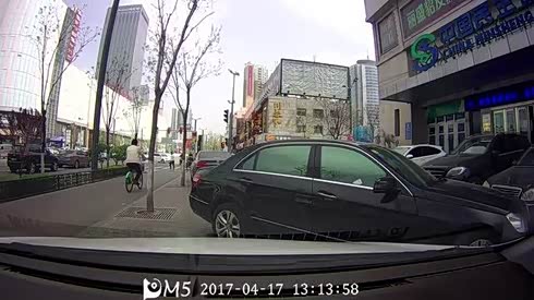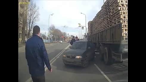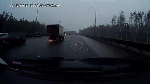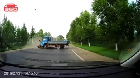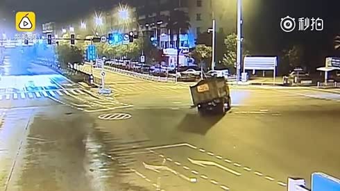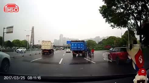 侥幸躲过一劫 骑车人路口险被货车辗轧