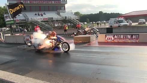 盲目超车惹的祸!摩托车被剐蹭惨遭碾压