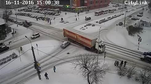 吓傻眼了 冰天雪地拐弯直接怼上对向车