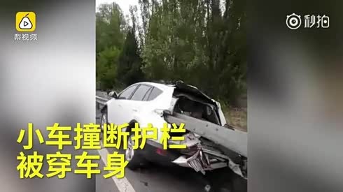 触目惊心 小车撞断护栏遭“穿膛”而过