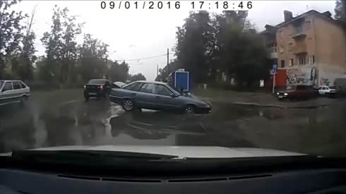 不知深浅 实拍轿车过涉水弯直接陷坑
