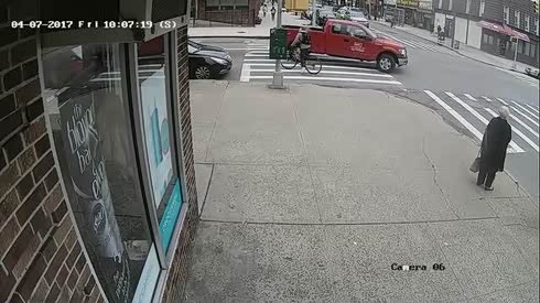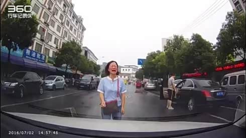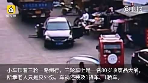 看屏幕右上角 车辆失控撞飞行人顶坏墙