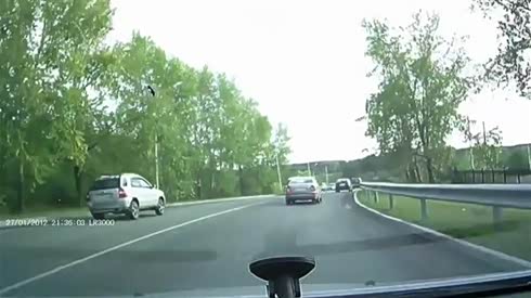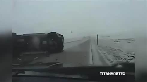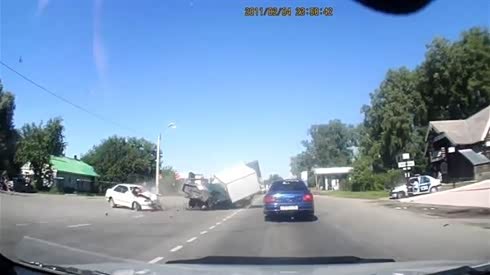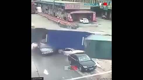 大货突然失控侧翻 三辆汽车遭“毒手”