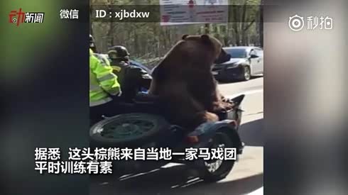 战斗民族出绝招 大棕熊坐摩托车兜风