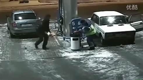 差点悲剧了!俄罗斯加油站起火赶紧扑灭