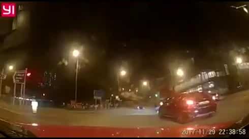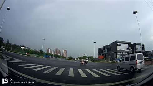太不负责 一家三口骑电摩闯红灯险酿祸