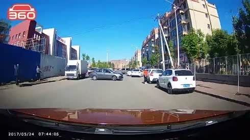 新手有点慌 小轿车当众掉头剐蹭又熄火