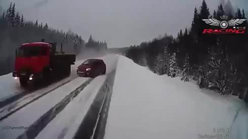这下麻烦了 实拍超速轿车雪天失控撞车