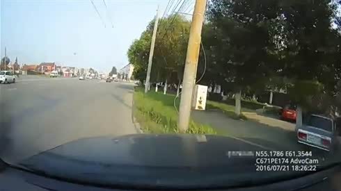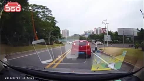 完全不看路 抢灯小车撞翻抢灯摩托车