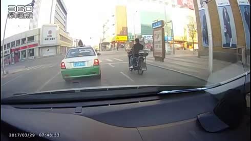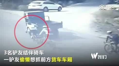 代价惨痛 骑车男偷懒拉货车摔倒被碾压