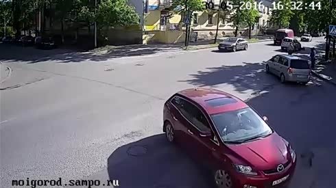 忍不住惊呼 牛宝宝横穿马路被轿车撞翻