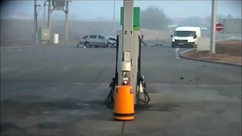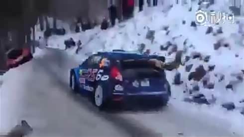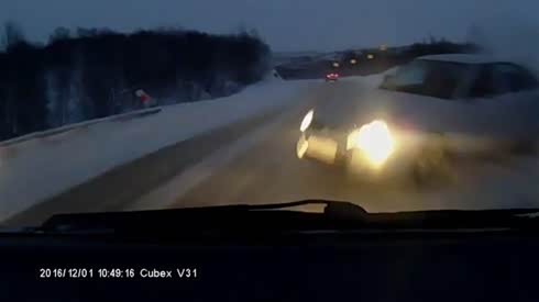 冰天雪地对面轿车打滑 直接撞惨摄像车