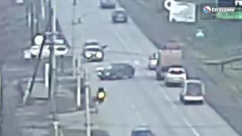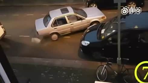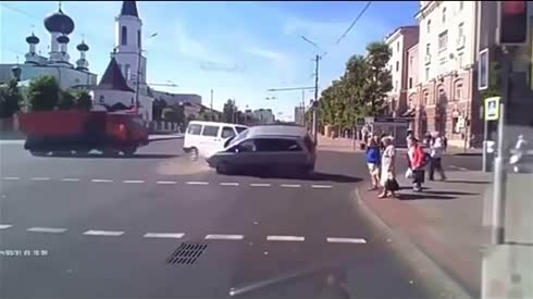 幸亏躲得快 两车相撞险些撞倒一群路人