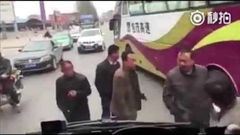 抢客纠纷?实拍公交车被多人“碰瓷”