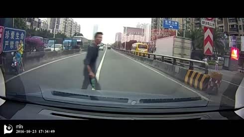 这就是鬼探头 男子小跑横穿马路被撞飞