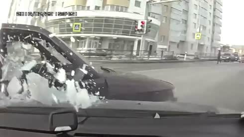 真够猛! 摄像车撞碎拐弯车副驾玻璃