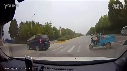 差点出事!轿车紧急躲避鲁莽的三轮车