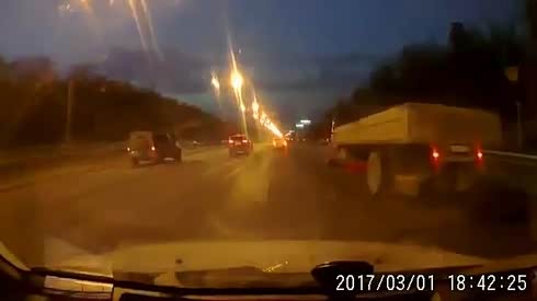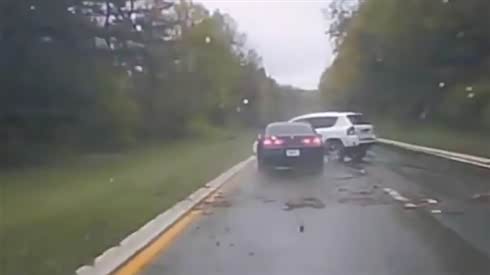 对向来车疯狂逆行 摄像车躲避翻下公路