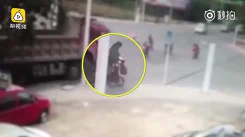 看得心痛 骑车女载俩娃被转弯货车碾压