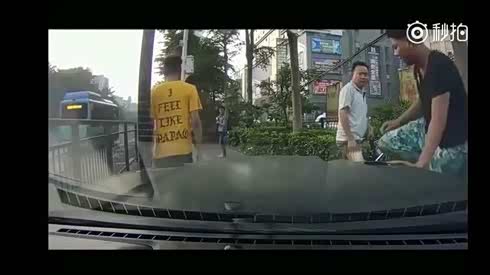 行人居然被风吹倒 幸亏司机及时停住