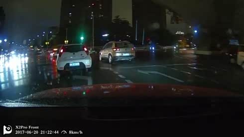 突然变道不打灯 摄像车刹车不及撞车