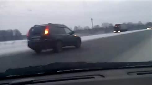 路滑开得快 轿车超车失控侧翻进沟里