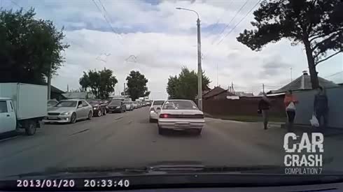 司机一路狂追 卡车没拉手刹溜车撞护栏
