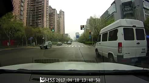 开车太不小心 实拍两车路口直接相撞